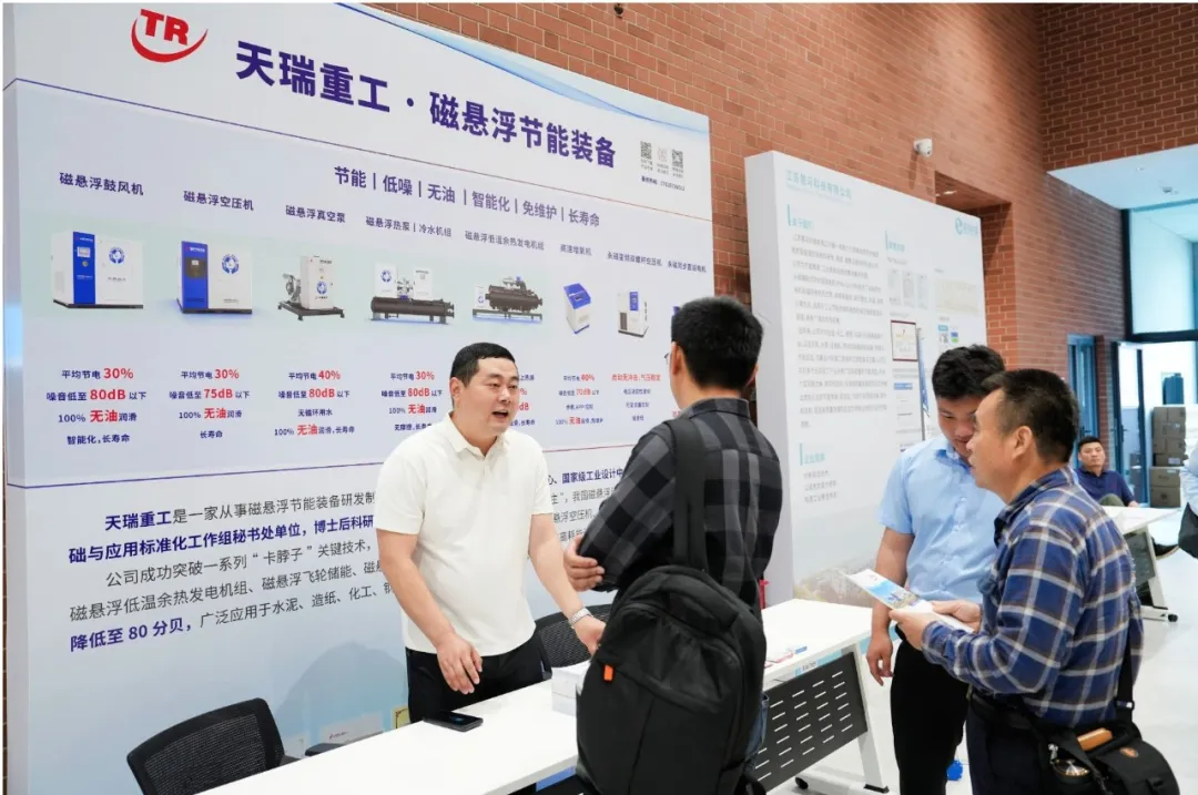 世界生產(chǎn)力科學(xué)院院士、山東天瑞重工總經(jīng)理鄭鐵民先生,在活動現(xiàn)場作以《磁懸浮新質(zhì)生產(chǎn)力助力行業(yè)低碳發(fā)展》為題,分享了磁懸浮技術(shù)在各行業(yè)節(jié)能降碳中的突破性應(yīng)用,引起了強(qiáng)烈反響。會后,與會企業(yè)代表紛紛與天瑞重工代表進(jìn)行深入交流,討論磁懸浮技術(shù)和產(chǎn)品在各自領(lǐng)域的應(yīng)用。